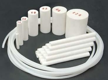 PTFE (聚四氟乙烯)俗稱塑料王、F4、或鐵氟龍。采用懸浮聚四氟乙烯樹脂經模壓成型制得可制成板材、車削膜、管。可壓制推制成型??膳c石墨等混合制成板、棒、盤根、繩、生料帶。